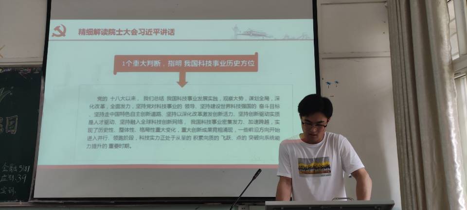 本网讯(通讯员 刘彤)为学习贯彻习近平总书记在两院院士大会上的重要讲话,提高学生的科技文化素养,奋进建设世界科技强国。经法系团总支于6月10日开展“砥砺奋进建设世界科技强国-学习贯彻习近平总书记在两院院士大会上的重要讲话”主题团课。