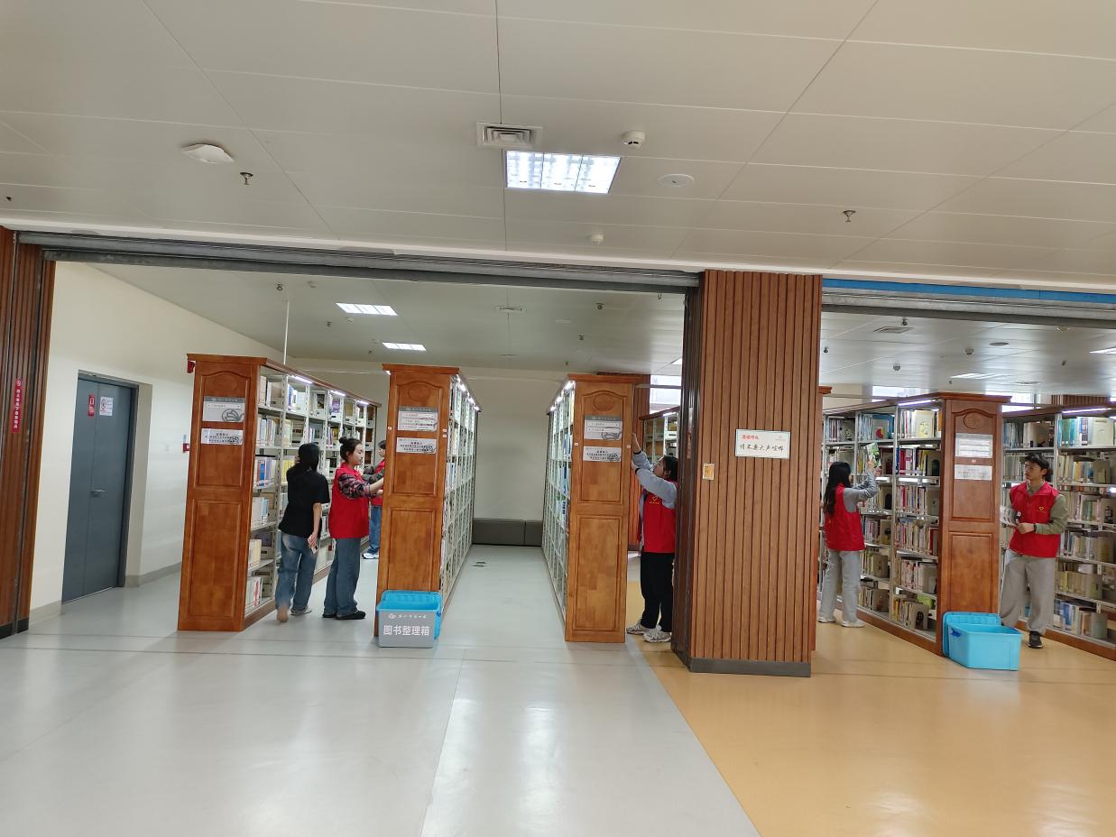 紧接着,志愿者们在图书馆管理人员的解说下了解了每一项任务的具体操作流程后,便有条不紊地开展着志愿服务工作。此次图书馆志愿服务工作分为三部分,一是将书架上的图书整理规范,保证阅览环境整洁;二是将书架上放错的图书摆放到正确的位置,方便读者借阅;三是帮助读者快速查找所需图书。在志愿服务过程中,志愿者们始终秉持着“奉献、友爱、互助、进步”志愿服务精神认真工作。他们的辛苦付出,不仅为读者借阅图书带来了便利,创造了更好的学习阅读环境,还增强了图书馆与大学生之间的交流,进一步拉近了图书馆与学校、与读者的距离,激发出更多人对书籍和阅读的热爱。