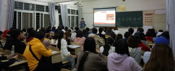 本网讯(通讯员 郭诺宇)10月23日晚,经法系团总支在西校区2教204组织开展学生干部培训会。本次培训特邀经法系辅导员卢佳智主讲,系学生会全体学生干部及我系大一、大二各班级班委参加培训会。