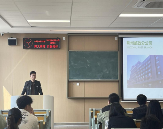 本次招聘宣讲会,人事部周经理播放企业宣传片向同学们展示了荆州邮政分公司的整体风貌,介绍了公司的企业文化、发展现状、员工培训体系、薪酬福利政策,并详细讲解了招聘需求、招聘流程、简历投递等事项。同时,周经理在现场对同学们的问题进行了答疑解惑,增强了同学们对企业各项信息和文化理念的了解。
