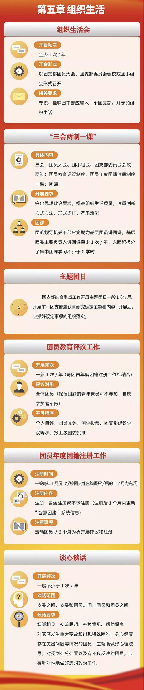 第十六条 团支部应当组织团员按期参加团员大会、团小组会和上团课,按期开展团员教育评议和团员年度团籍注册,定期召开团支部委员会会议。