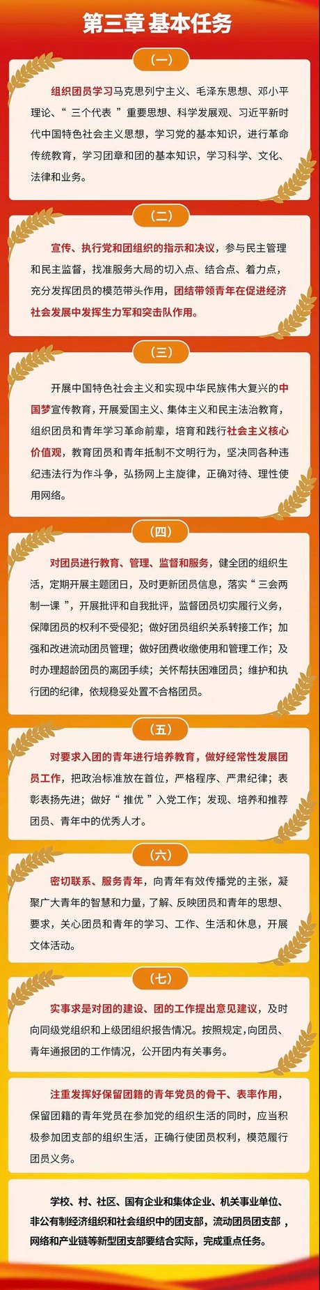 (八)网络、产业链等新型团支部,以有效覆盖、联系服务团员和青年为重点开展工作,宣传党的路线方针政策,根据团员实际情况,组织参加学习,开展组织生活,推动团员和青年承担社会责任、弘扬正能量。