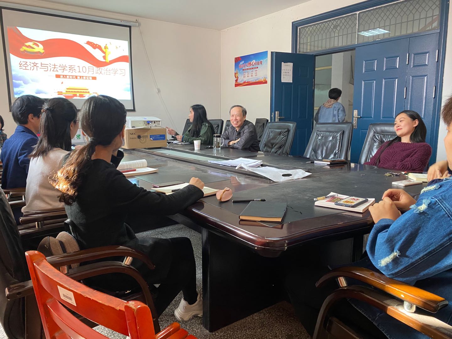 10月23日下午15:50,经法系全体教职工、学生党员在系会议室开展10月政治学习和支部主题党日活动。会议由党总支书记李成军主持。