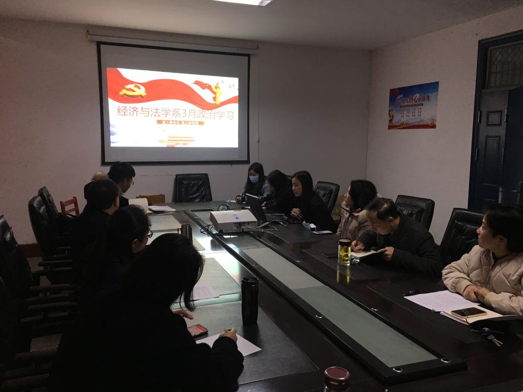 3月18日下午14:30,经法系全体教职工、学生党员在系会议室开展3月政治学习和支部主题党日活动。会议由党总支书记李成军主持。