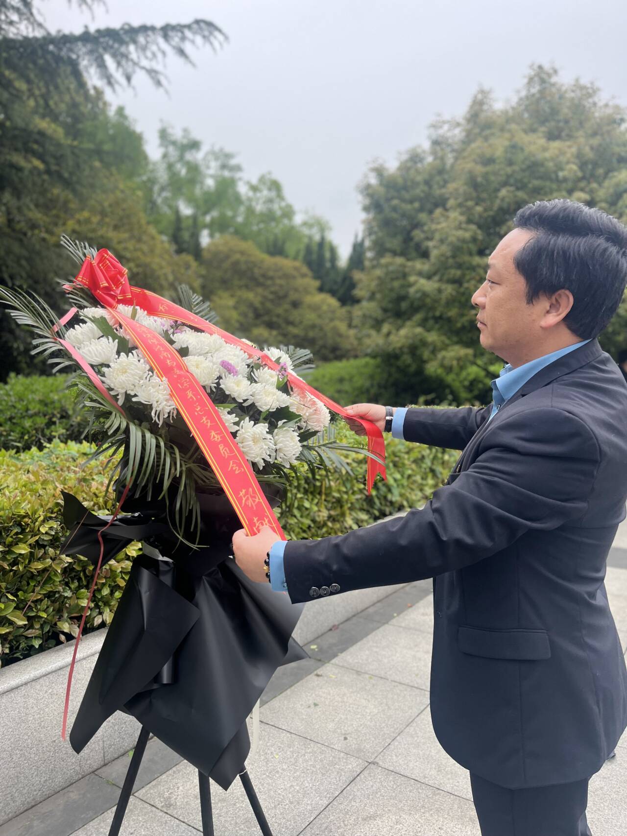 随后,全体人员一起瞻仰烈士纪念碑,到烈士陵园墓区祭扫,为革命先烈擦拭清洁墓碑。