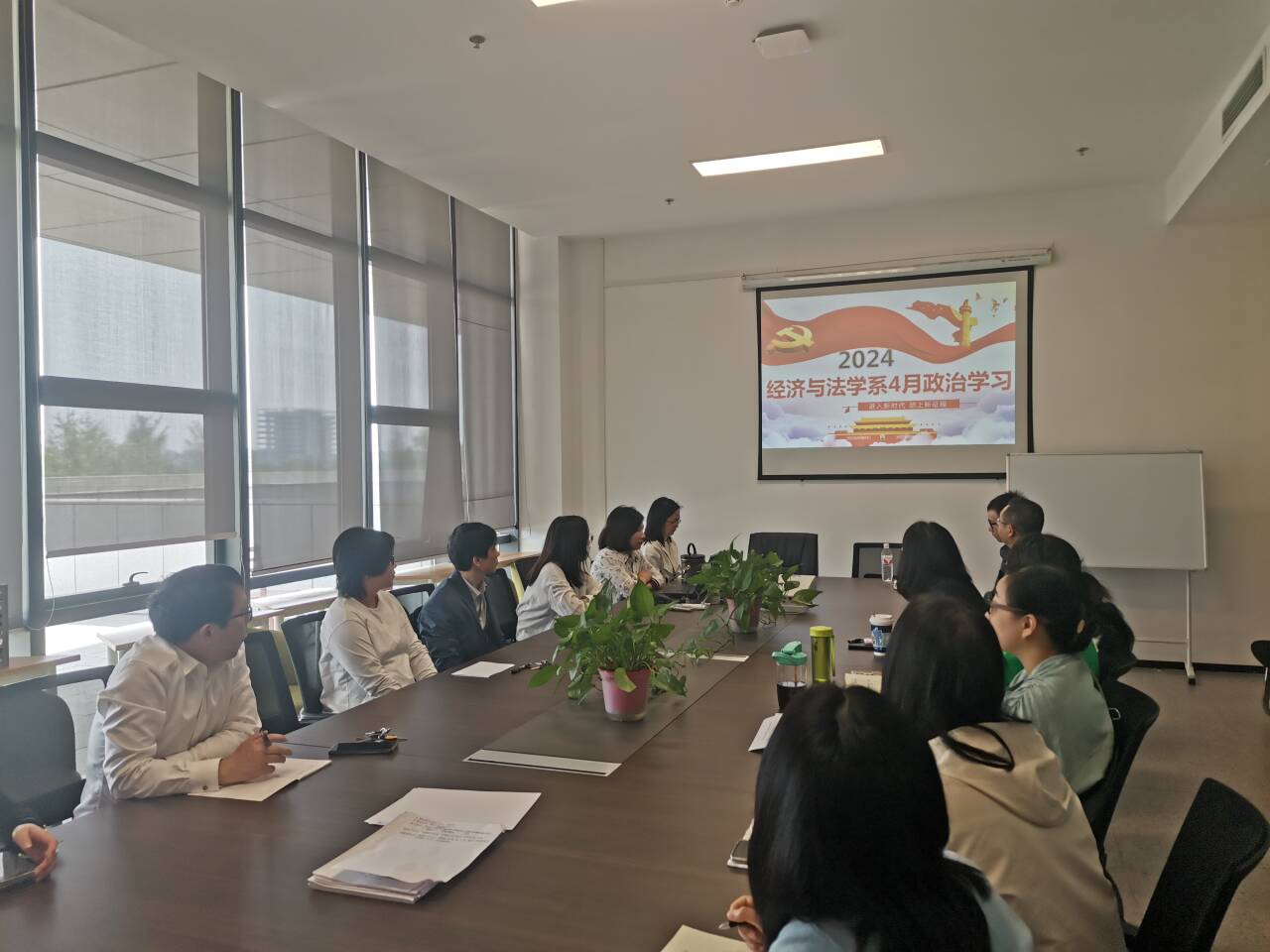 4月25日下午14:00,经法系教工支部在系会议室开展4月政治学习和支部主题党日活动。会议由教工党支部书记陈莉主持。