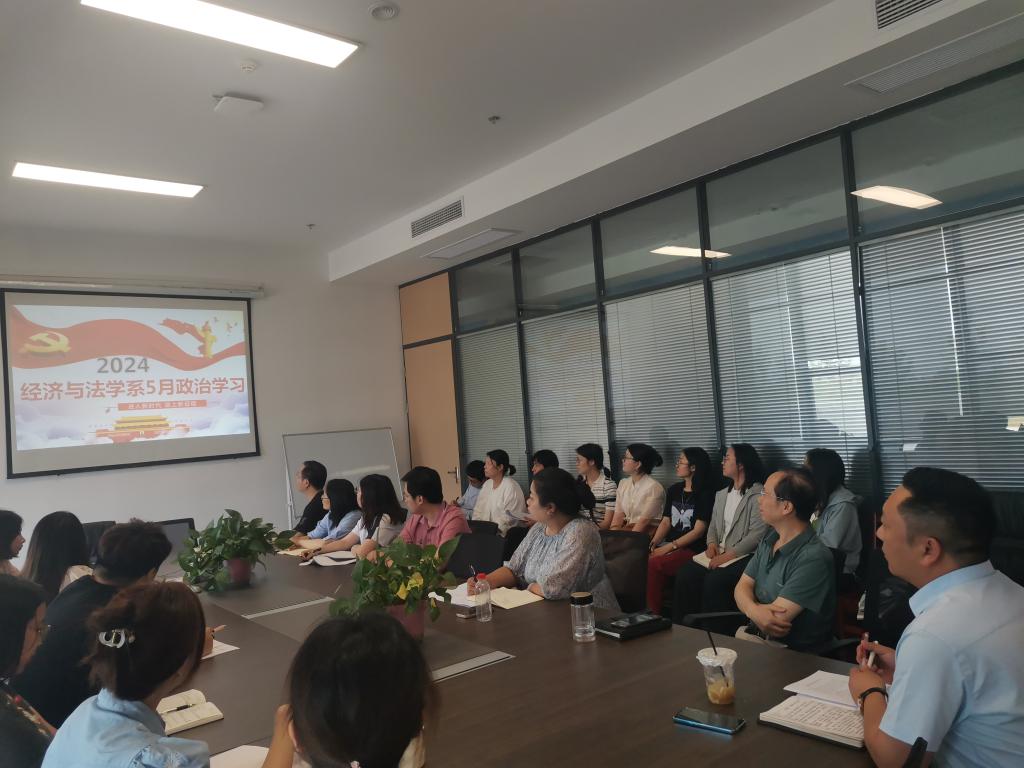 5月23日下午13:00,经法系教工支部在系会议室开展5月政治学习和支部主题党日活动。会议由教工党支部书记陈莉主持。