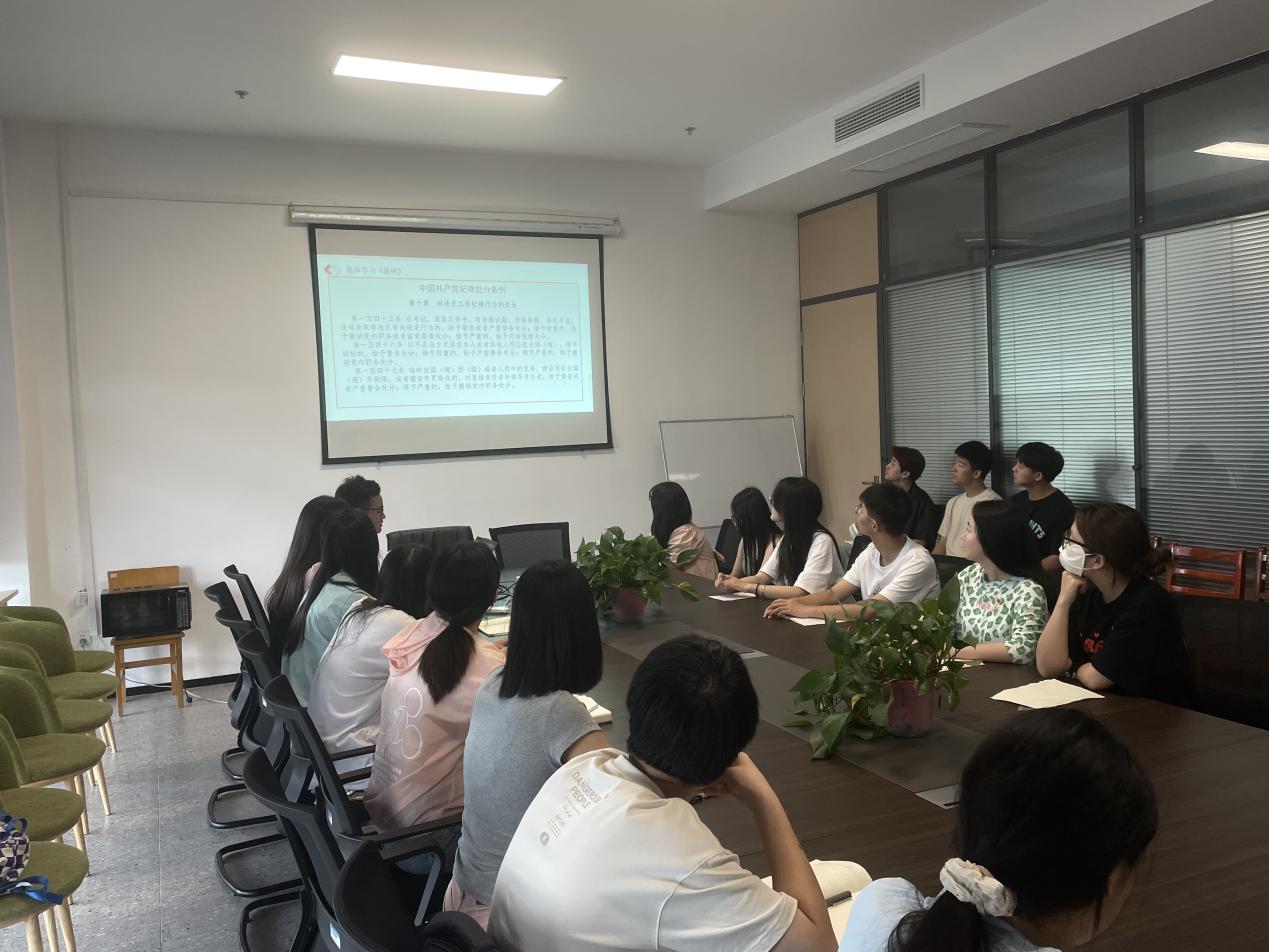 本网讯(学生记者 黄春桥)2024年6月19日中午12:00,经法系学生党支部党员在经法系会议室开展6月政治学习和支部主题党日活动。本次会议,由学生党支部书记杨杉杉主持。