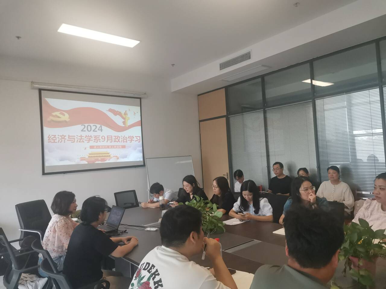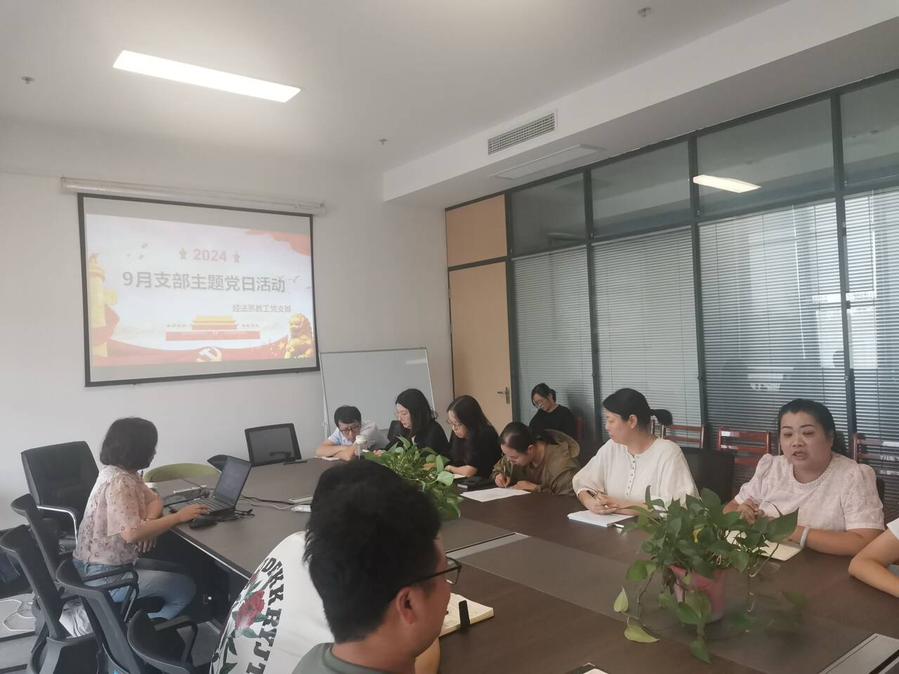 9月26日下午13:50,经法系教工支部在系会议室开展9月政治学习和支部主题党日活动。会议由教工党支部书记陈莉主持。