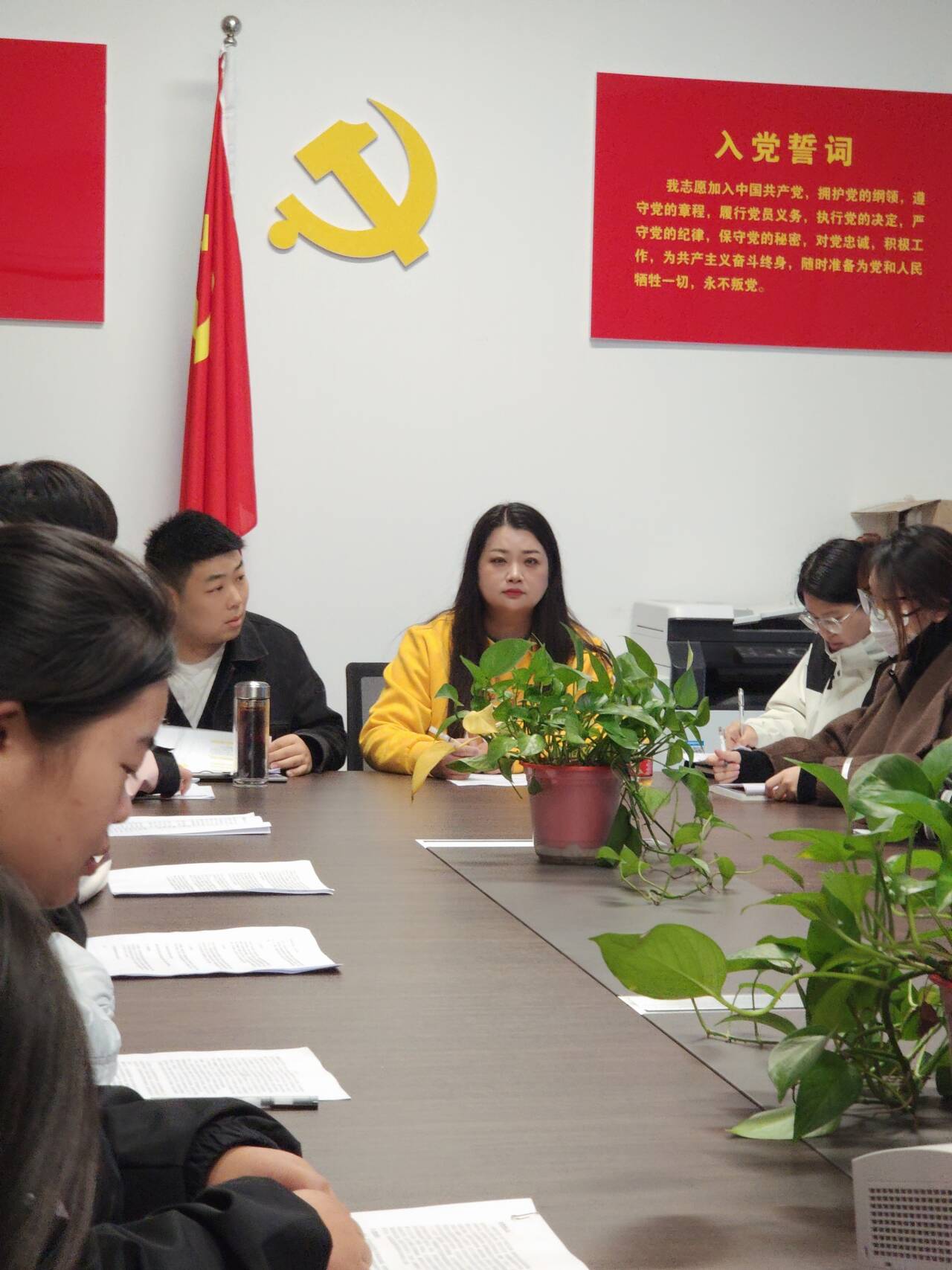 本网讯(学生记者 黄春桥)2024年11月18日下午1:00,经法系学生党支部党员在经法系会议室开展11月政治学习和支部主题党日活动。本次会议,由学生党支部书记杨杉杉主持。