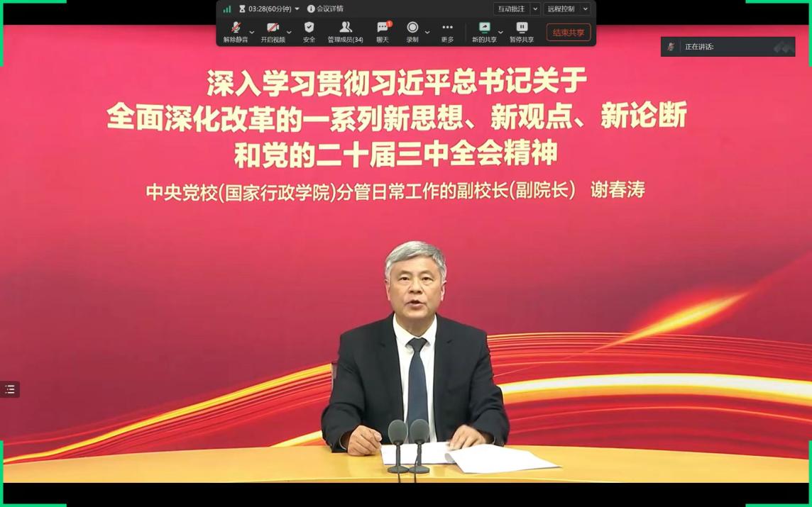 活动最后由经法系党总支书记辛裕作总结讲话,辛裕表示,深入学习贯彻党的二十届三中全会精神,是当前和今后一个时期的重要政治任务。全体党员要切实提高政治站位,深刻领会改革精神实质,增强改革的责任感和使命感。要把学习成果转化为实际行动,立足本职岗位,积极投身改革实践,为推动学院高质量发展贡献力量。同时,要以改革为契机,不断加强自身建设,提高自身素质和能力,以更好地适应新时代改革发展的需要。