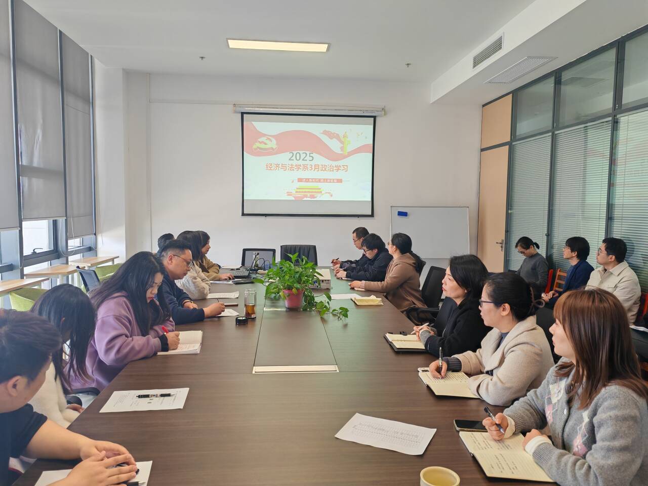 3月20日下午2:00,经法系教工支部在系会议室开展3月政治学习和支部主题党日活动。会议由教工党支部书记陈莉主持。
