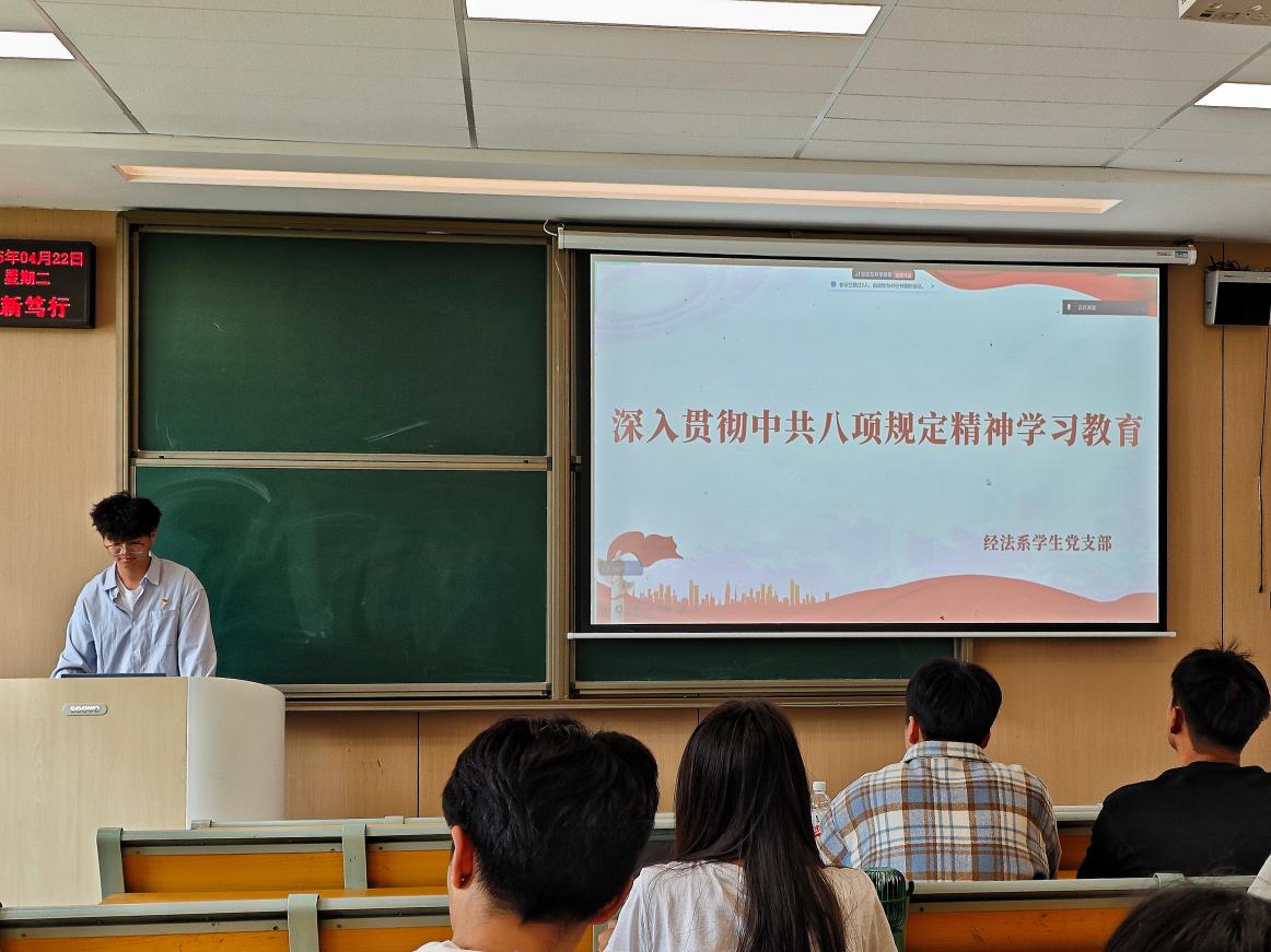 本网讯(学生记者 王小庆)2025年4月22日中午12:00,经法系学生党支部党员在教学楼C-122m开展4月政治学习和支部主题党日活动。本次会议,由学生党支部书记杨杉杉主持。