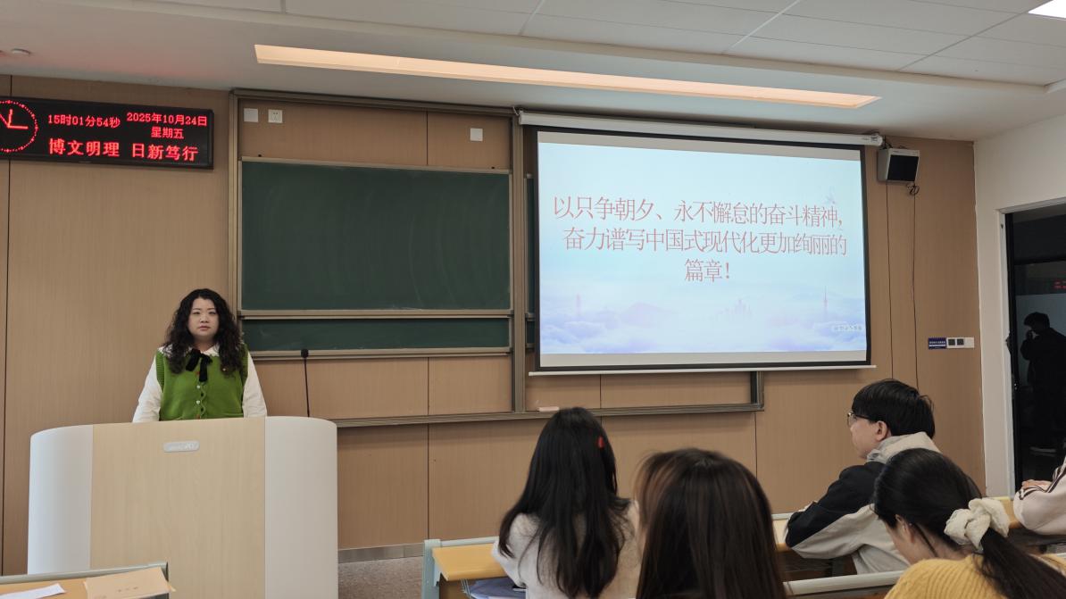 本网讯(学生记者 王小庆)2025年10月24日下午3:00,经法系学生党支部党员在教学楼C-118m开展10月政治学习和支部主题党日活动。