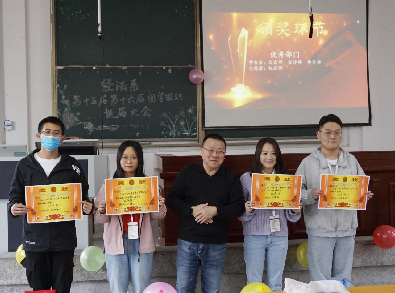 会议最后,党总支副书记杨杉杉老师为第十六届团总支学生会主席团、志愿者服务队队长、副队长颁发聘书。党总支书记李成军老师为学生会优秀部门颁奖,借此勉励下一届学生会各部门积极工作、努力进取。