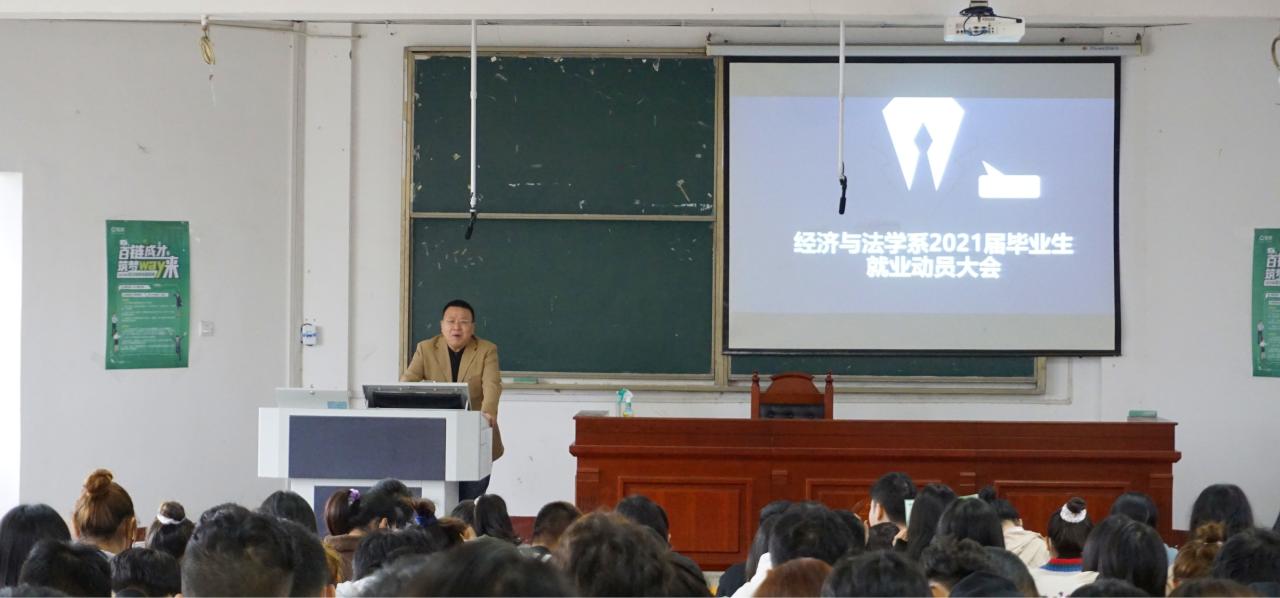 本网讯(通讯员黄佳林)10月16日上午10:00,经法系于四教300召开就业宣讲会,经法系党总支书记李成军、辅导员老师卢佳智、滕宋云及我系17级全体学生参加此次就业宣讲会。会议由卢佳智主持。