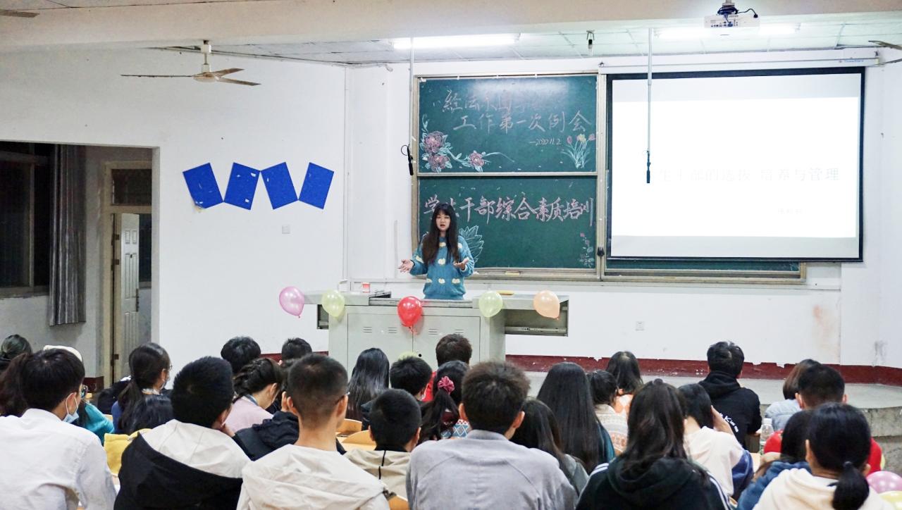本网讯(通讯员:郑驰 邓安琪)11月2日晚,经法系于4教200召开学生干部综合素质培训大会暨经法系第十六届团学组织工作第一次例会。与会人员有经法系19级、20级所有学生干部及志愿者服务队全体成员。会议邀请到党总支副书记杨杉杉老师、辅导员卢佳智老师、滕宋云老师参会。大会由秘书处部长谭舒文主持。