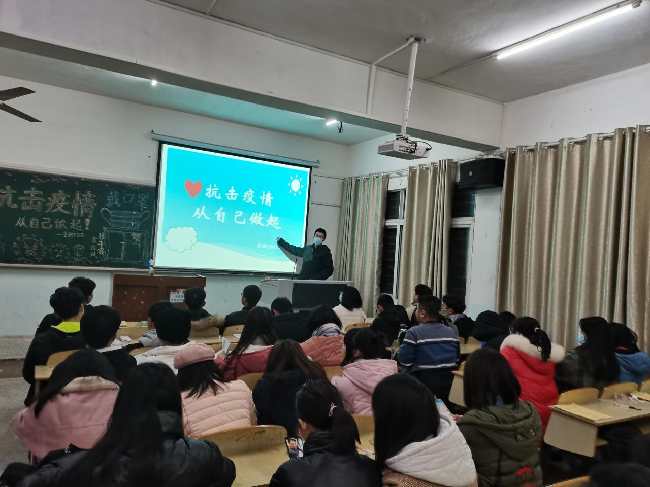 本网讯(通讯员 郁鑫、邓安琪)为进一步落实疫情防控常态化管理工作,经济与法学系于11月26日晚,组织各班在自习室开展“冬季防疫”主题班会。