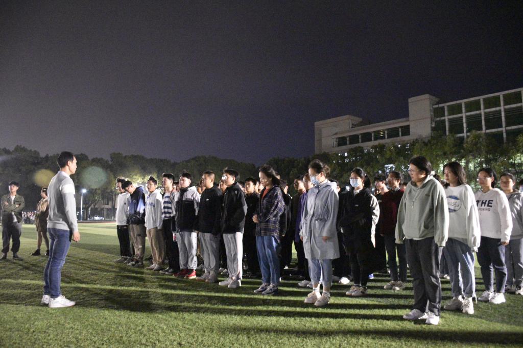 本网讯(学生记者 龚千惠)10月7日,晚上七点,我系在长江大学西校区操场上举行第十五届运动会动员大会,我系220人学院方阵,64人系部方阵全体同学为运动会开幕式做准备。经济与法学系党总支副书记杨杉杉、辅导员文国霞、卢佳智到场指导工作,动员大会由经法系学生会主席团成员主持。