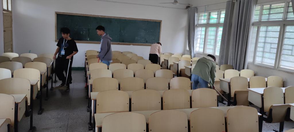 此次校园清扫活动共有七个区域,包括我系二教自习室、九舍办公室、经法系心灵驿站以及校园主干道。