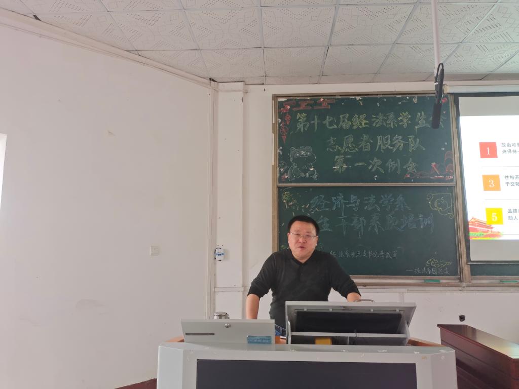 本网讯(学生记者 龚千惠 见习记者 李雅雯 张明杰)10月26日中午,经法系在4教300开展学生干部素养培训大会。经法系辅导员卢佳智老师、滕宋云老师参加会议,学生会全体成员与2021级各班班委参加此次培训大会,大会诚挚邀请到经法系党总支书记李成军老师为大家做培训,秘书处干事谭茜主持本次培训大会。