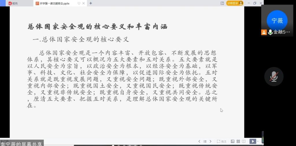 本次班会有助于帮助同学们更好地理解中华民族命运与国家关系,学习总体国家安全观的核心要义和丰富内涵,帮助同学们更好的遵守《公民疫情基本行为准则》,共克时艰。在同学们的积极配合下,本次班会顺利开展。