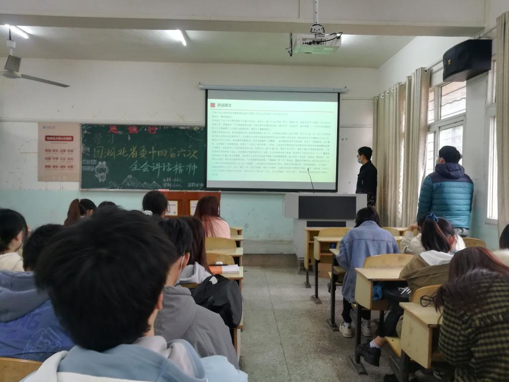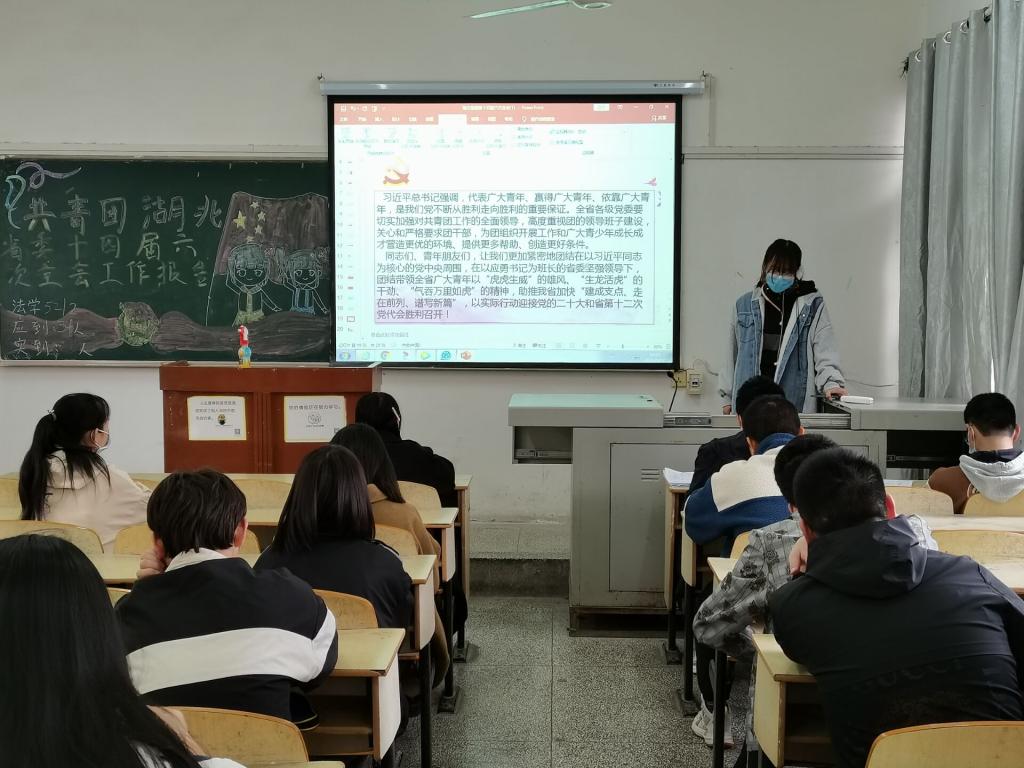 本网讯(见习记者 曾清清 胡凯捷)为贯彻学习共青团湖北省委十四届六次全会中精神,深入学习贯彻关于青年工作的重要思想,3月17日,经法系团总支组织各团支部开展“学习共青团湖北省委十四届六次全会讲话与报告”主题团课。