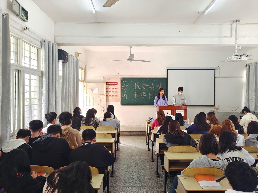 本网讯(见习记者 帅赟 田雨洁)近期,国内多地区爆发大规模疫情。为保障学生清明假期在校安全、做好疫情防控。4月2日,经法系各班开展“关于清明休假期间的疫情防控问题”主题班会,由各班班长主持,辅导员及各班全体成员参加。