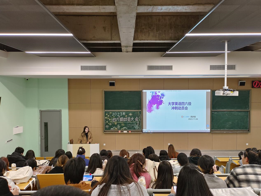 本网讯(见习记者:郑兴冰)全国大学生英语四六级考试在即,为进一步加强经法系学风建设,营造良好的复习备考环境,激发同学们学习英语的热情,经法系于11月14日晚上7点在B-213举行英语四六级动员大会。此次大会邀请了信息与机电工程学院的辅导员燕梦蝶老师为我系学子分享英语四六级考试相关的技巧与经验,大会由经法系辅导员刘曼莹老师主持,经法系2022级全体学生以及2023级部分学生参加。