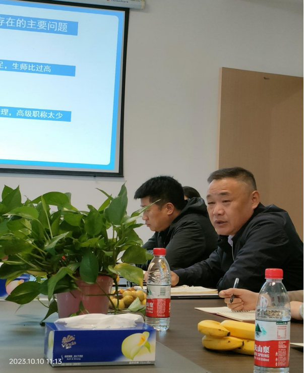 首先,系主任万楚军介绍了院系的基本信息和现状。万楚军主要就师资队伍建设、实验室建设和就业工作等方面取得的成绩和存在的不足进行了阐述。