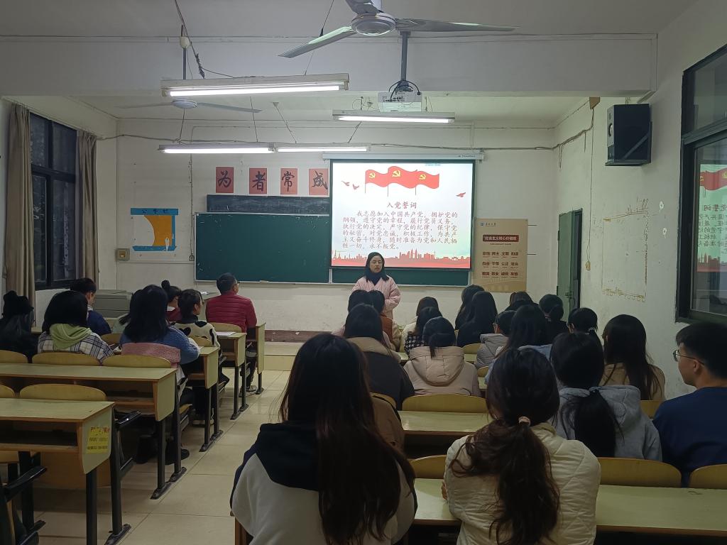 本网讯(学生通讯员 郑华夏)昨天(11月29日)下午,我系学生党支部召开了预备党员转正大会。覃儒卿、李晓怡、杨琪等相关入党介绍人和支部全体党员参会,会议由我系党支部书记梅曼曼主持。