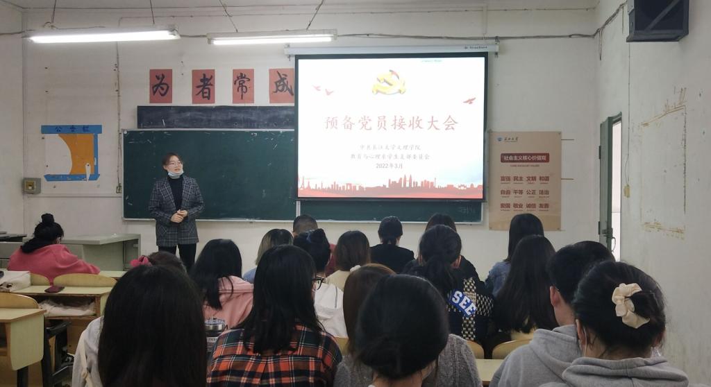 本网讯(学生通讯员 郑华夏)3月31日下午,教育与心理系学生党支部在3教202召开预备党员接收大会,讨论并表决接收发展对象成为预备党员事宜。会议由党支部书记书记梅曼曼主持,支部所有党员参会。