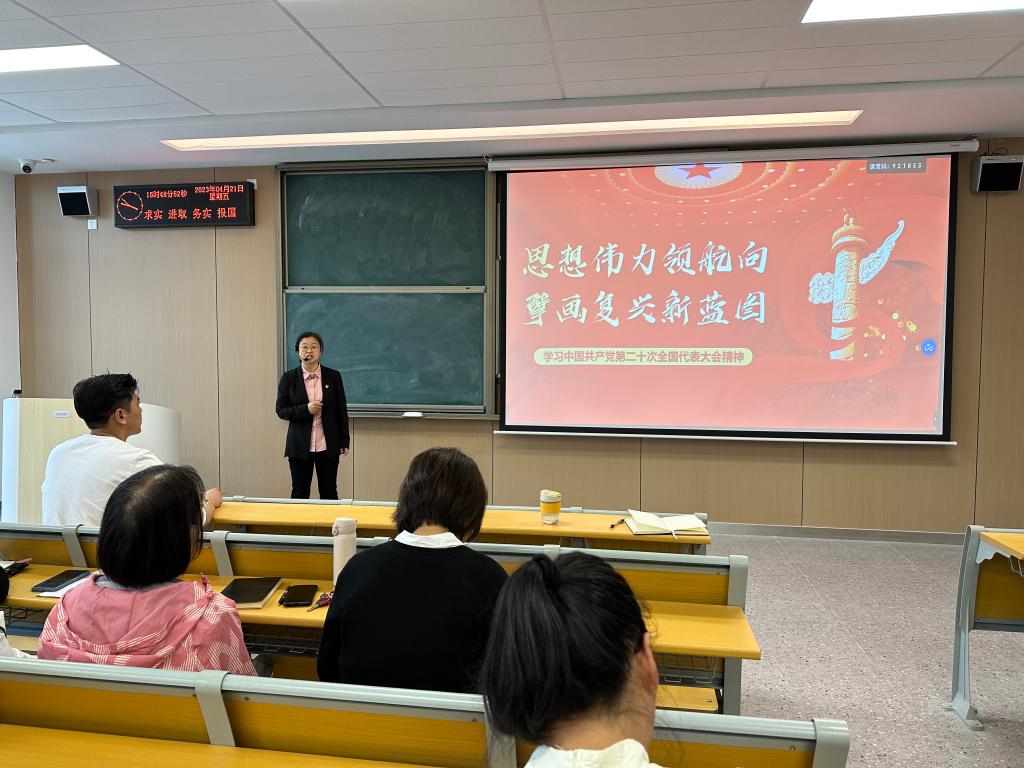 马克思主义学院副教授佘时珍围绕党的辉煌历程、二十大的主题,主要成果、二十大的15个关键词、过去5年的工作和新时代10年的伟大变革、以中国式现代化全面推进中华民族伟大复兴、为全面建设社会主义现代化国家而团结奋斗六个方面作了全面宣讲和深入阐释。并强调要把学习宣传贯彻党的二十大精神作为当前和今后一个时期的首要政治任务,把党的二十大精神贯彻落实到教育改革发展各方面、全过程,落实到教育强国建设上。