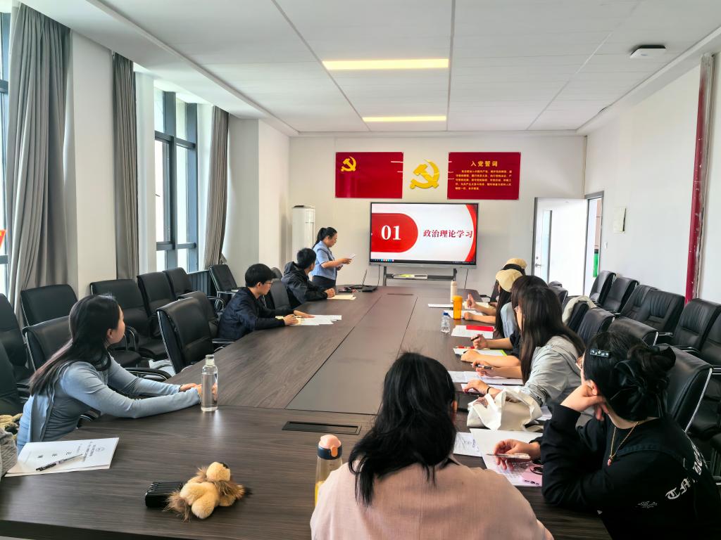 最后,鲁婷讲授学习党的二十届三中全会精神专题党课。在联系实际、交流研讨环节,围绕“作风建设永远在路上”这一主题,党员教师陈盈盈、张一诺、乔炎等结合工作实际作了交流发言。