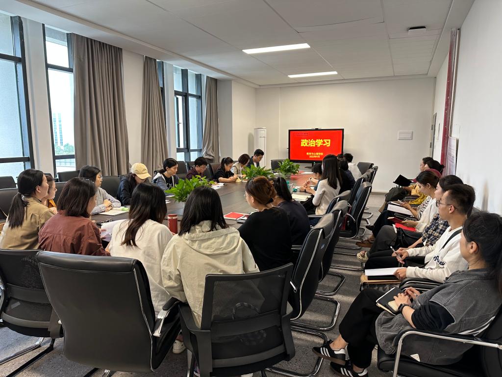 9月21日下午,我院在JY304会议室开展9月份政治学习。会议由教育与心理学院党总支书记祝峰主持,全体教职工参会。