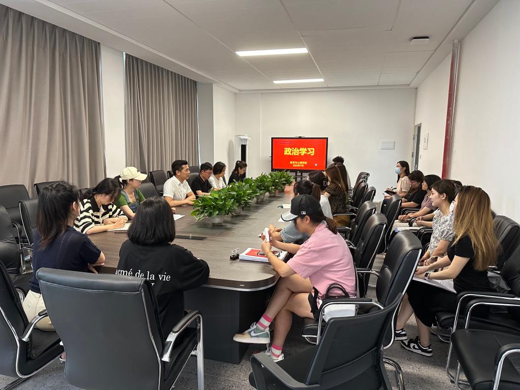 7月7日下午,我院在JY304会议室开展7月份政治学习。会议由教育与心理学院党总支书记祝峰主持,全体教职工参加,学生党员线上参会。