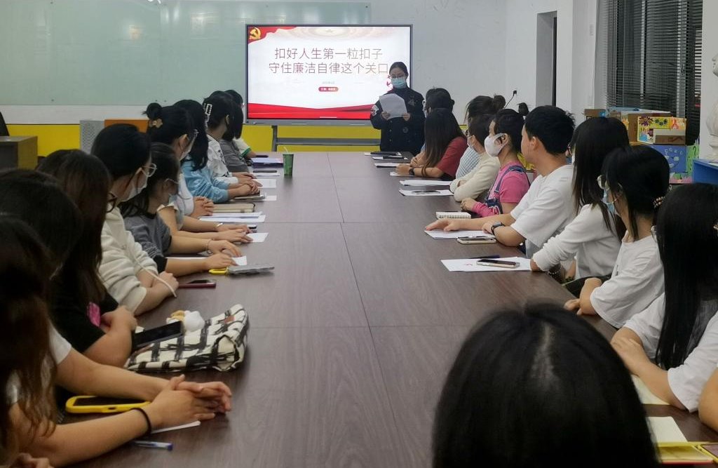 2022年6月10日14:30,教育系在3-101教室开展了主题为“扣好人生第一粒扣子,守住廉洁自律这个关口”的学生党员廉洁教育专题党课。教育系全体毕业生党员参加。本次党课由教育系党总支副书记梅曼曼主讲。