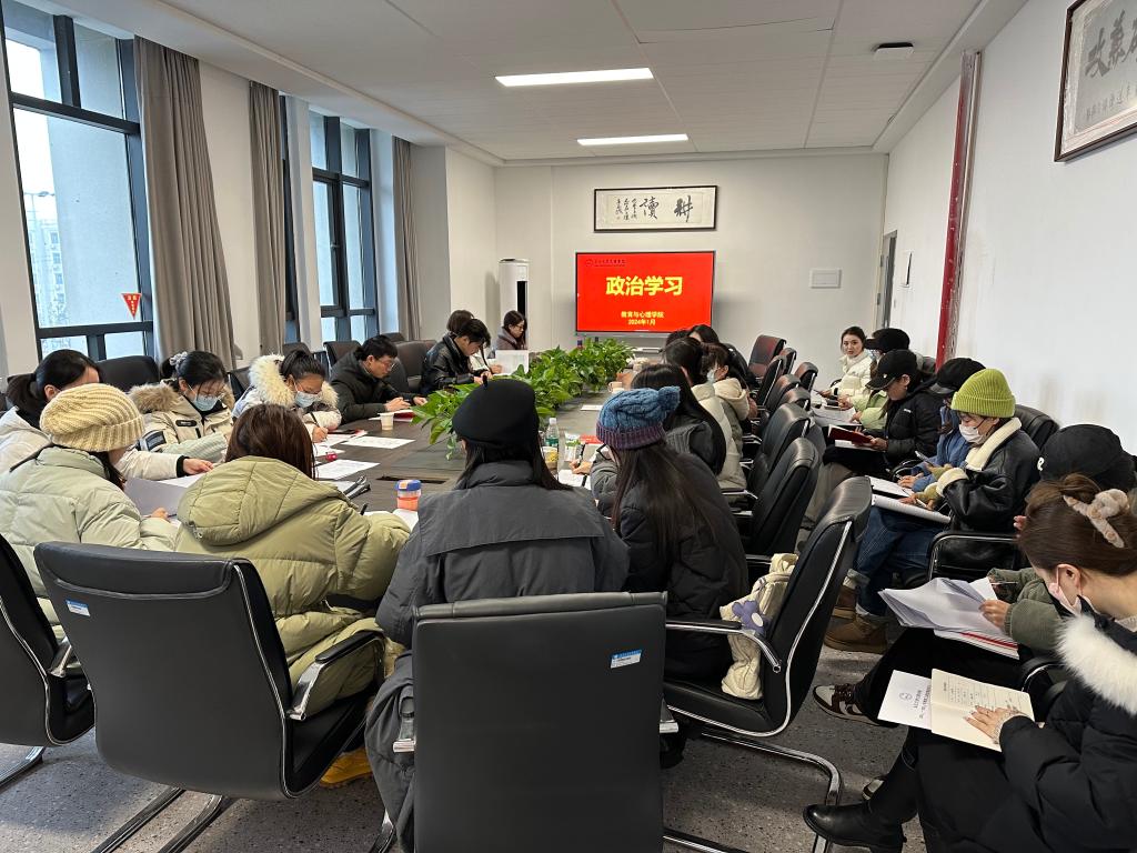 1月18日下午,教育与心理学院在JY304会议室开展2024年1月份政治学习和支部主题党日活动。会议由教育与心理学院党总支书记祝峰主持,全体教职工参加,学生党员线上参会。