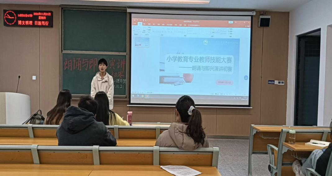 精心策划的选拔赛涵盖了模拟授课、朗诵与即兴演讲、主题班会设计、课件制作四个组别,共有43名选手参加比赛。每个组别均设有评委打分,参赛者们以《湖北省小学教育专业师范生技能大赛评分标准》为指导,展现了他们在教学设计、语言表达、班级管理、信息技术应用等方面的综合能力。