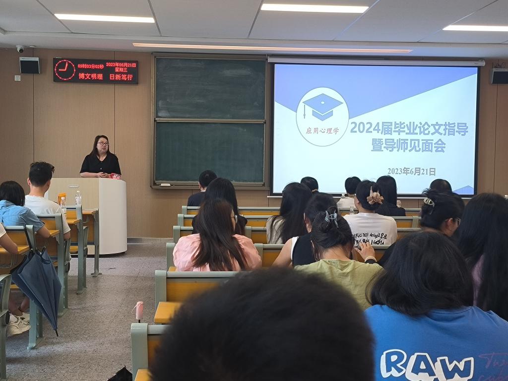 本网讯(通讯员 陈莎)6月21日上午9点,我院应用心理学专业在教学楼C217M举行2024届毕业论文指导暨导师见面会,2024届应心学生及论文指导老师参加活动。活动由教研室主任陈莎主持。