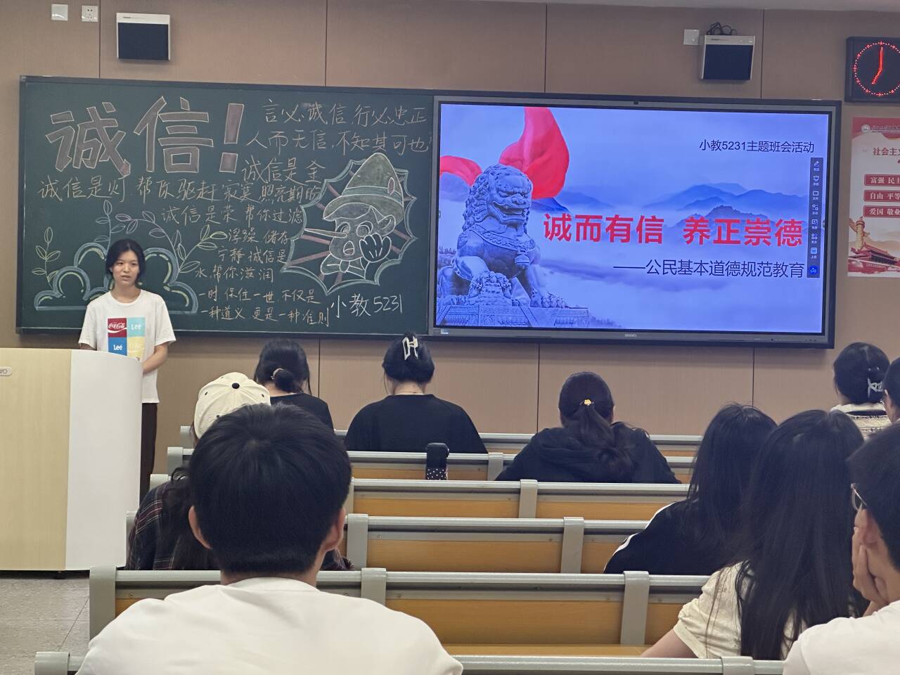 (通讯员 周玲)2024年5月29日,我院各班级在教学楼举办了以“诚信教育”为主题的班会活动。本次班会旨在引导学生树立正确的价值观,增强学生的思想道德素质,促进校园文明风尚的形成,营造良好的学习氛围。