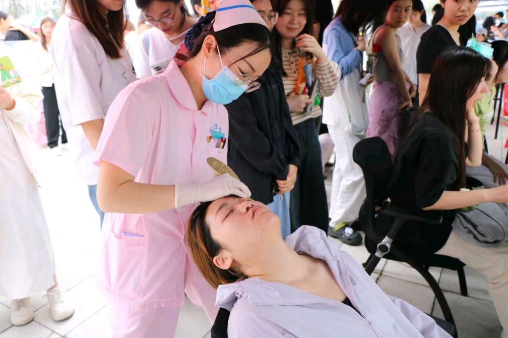 下午14点30分,讲座在B-112学术报告厅正式开始。讲座中,主讲人通过视频展示中医发展历程,并详细地讲解中医理论及养生知识,分享适合大学生的中医养生知识,帮助学生理解中医的健康调理理念。与此同时,校园大道上的义诊活动同步开展,中医师通过望、闻、问、切等传统方法为同学们提供健康咨询,并现场演示刮痧、耳穴压豆等疗法。在此次活动中,同学们通过实践体验,深入学习了中医文化,近距离感受到了中医的魅力。