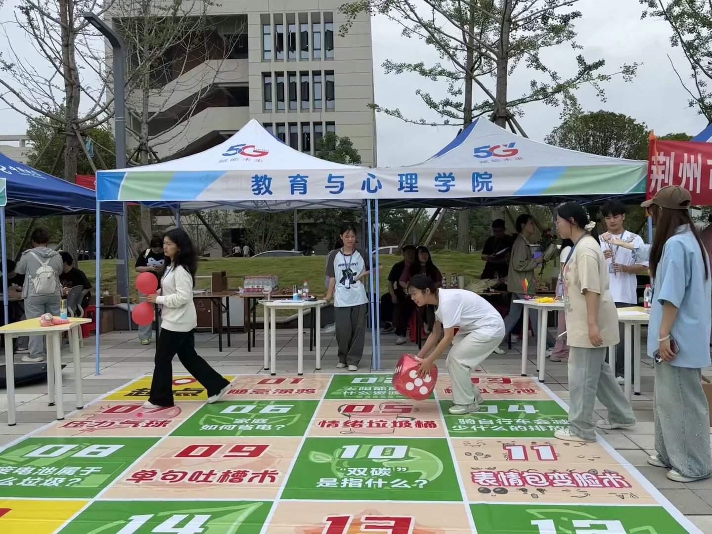 教育与心理学院心灵驿站以“绿动心灵 低碳同行”为主题开展特色活动。活动通过趣味互动与绿色低碳实践相结合的方式,引导学生关注心理健康,践行环保理念。围绕主题,精心设计了“心晴大富翁“”小情绪闯关游戏。参与者通过投掷骰子在特制棋盘上前进,完成情绪释放任务与绿色低碳知识问答任务。棋盘设计独具匠心,包含16格路径,其中“情绪释放驿站”通过具象化行为例如跳绳、踢毽子等帮助参与者处理负面情绪,“知识充电站”则设置了绿色低碳常识问答。活动吸引了大量学生踊跃参与,现场氛围热烈。参与者在工作人员引导下完成挑战并获认证盖章。在整个活动现场还设置了现场拍照打卡、心理知识宣传展板等环节,进一步丰富了活动形式,增强了学生的参与感与获得感。