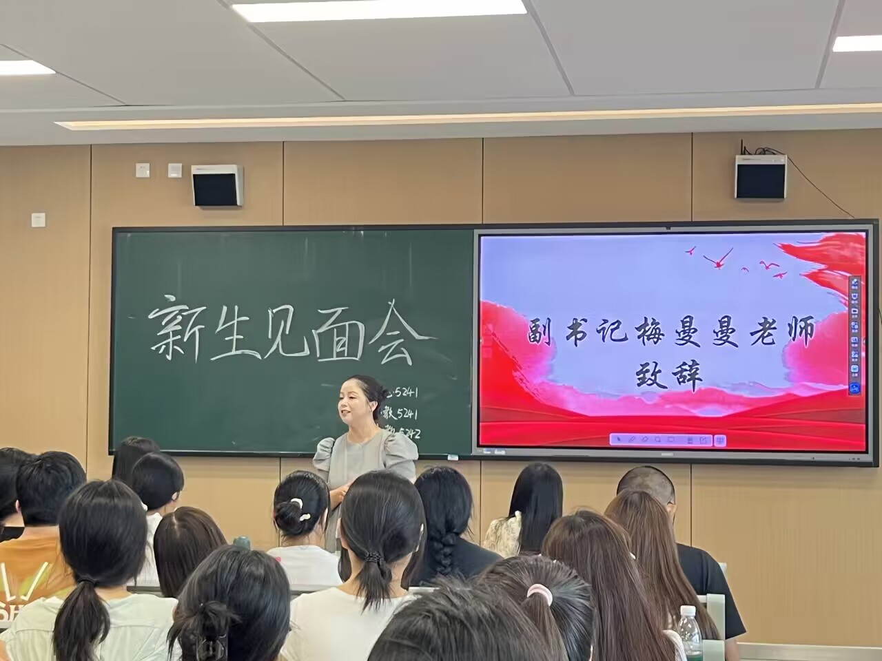 9月8日上午9点,我院于教学楼A-508召开新生见面会,会议由辅导员王帅主持。会议伊始,师生共同观看防溺水宣传视频,提高安全意识。接着,党总支副书记梅曼曼向大家详细介绍了学校及学院情况,鼓励新生珍惜时光,努力成为更好的自己。随后,由辅导员讲解校园生活细节和心理健康问题。各班班主任着重在学习方面为新生指明方向,向新生们介绍课程设置及各项学科竞赛。接着,辅导员对防诈骗知识和军训注意事项进行讲解,提醒新生保持警惕,保护自我财产安全,以及军训期间做好防暑防晒工作。最后,新生代表发言,分享自己开学的感受,并鼓励大家积极向上,认真对待即将到来的军训。