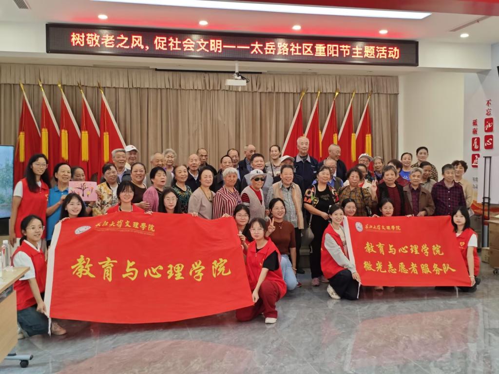 (通讯员 图文/李孝伟)10月11日上午9时,教育与心理学院微光志愿者服务队的志愿者们于太岳路社区开展了以“树敬老之风,促社会文明”为主题的重阳节活动。
