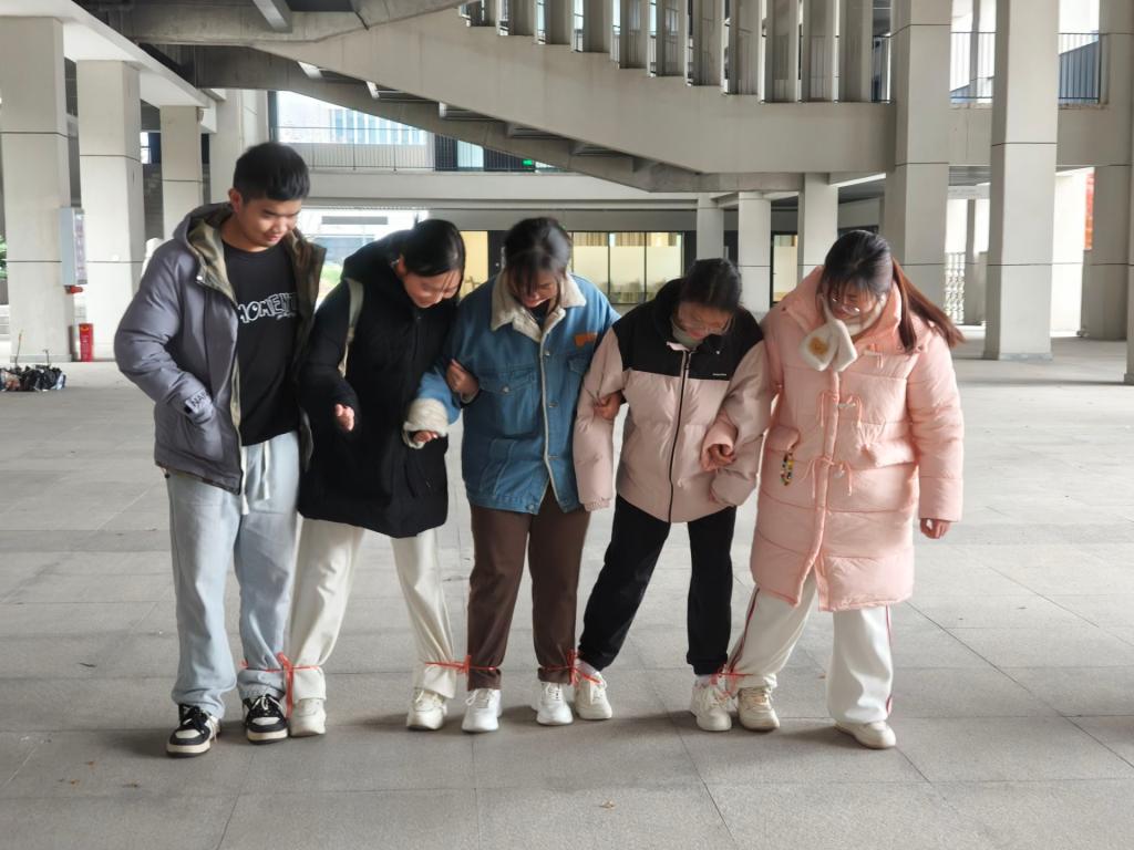 活动开始,同学们通过“自我探寻”心理测评环节,让学生从性格、情绪、压力应对等多维度深入了解自己,为后续心理成长提供依据。接着是“快乐接力”心理健康团辅游戏环节,此环节设有“四人五足”、“踩气球”、“心连心”等趣味游戏。同学们自由组队,在团结协作中享受快乐,释放压力。