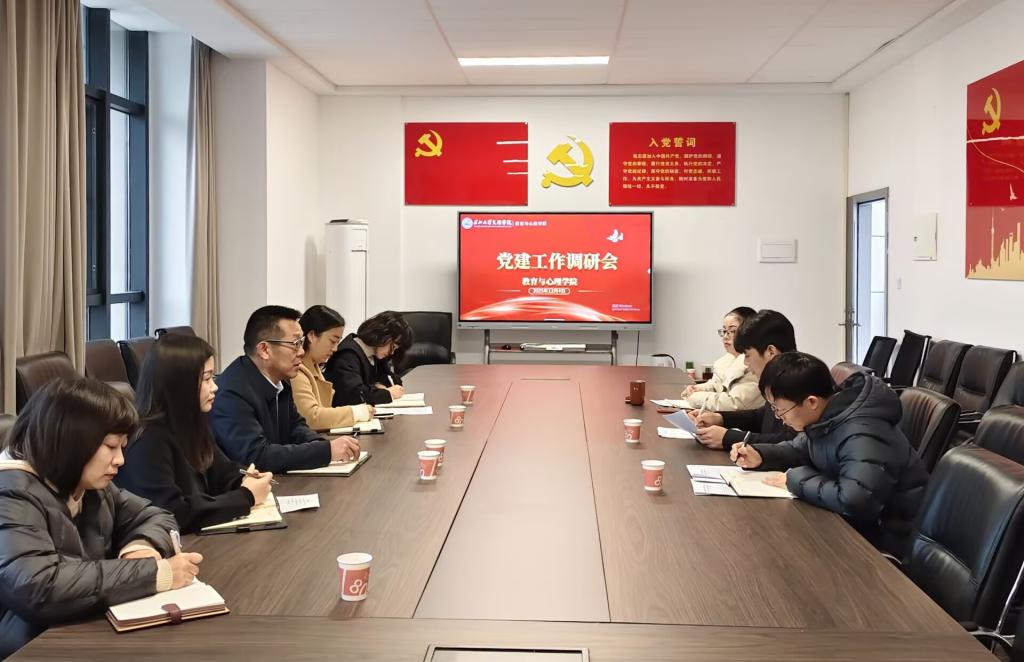 颜建洲认真听取汇报,对教育与心理学院党建工作取得的成效给予充分肯定。他指出,学院党建工作基础扎实、思路清晰,在引领学院发展、凝聚师生力量等方面发挥了重要作用。针对汇报中提出的困难和问题,颜建洲逐一进行指导,并提出具体要求。他强调,要进一步强化党建引领作用,不断探索党建与业务融合的新路径、新方法,打造具有学院特色的党建品牌;要持续加强意识形态工作,牢牢掌握意识形态工作领导权和主动权;要严格落实全面从严治党主体责任,持之以恒正风肃纪,为学院高质量发展提供坚强的政治保障和组织保障。