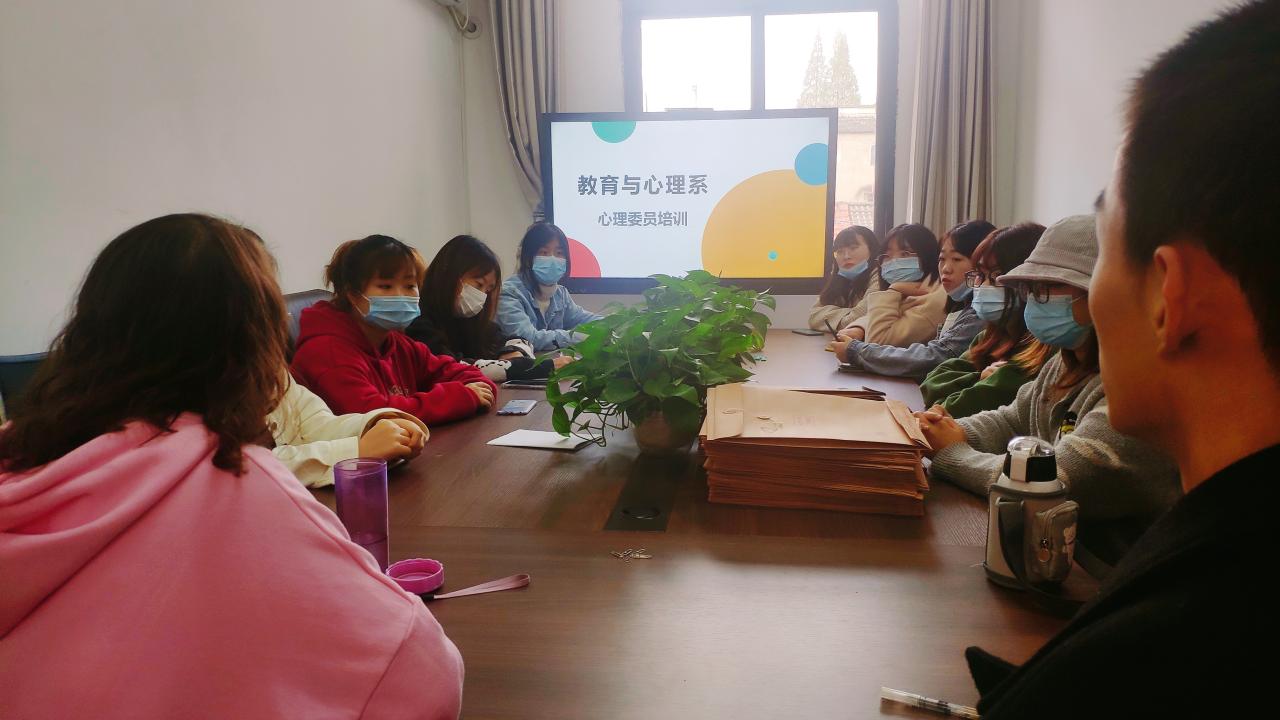 2020年11月19日15:30,在教育与心理系会议室召开心理委员培训,培训由系党总支书记李刚英主持召开,系部大一——大三的各班心理委员参加。