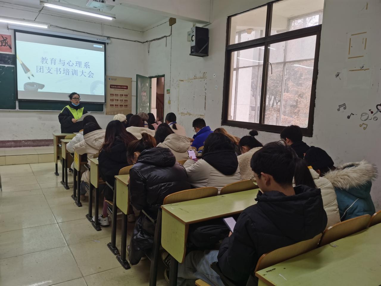 (学生通讯员 彭慧玲)12月9日中午12:30,我系召开团支书培训大会,参与此次大会的有我系团总支学生会组织部成员及各班团支书。本次大会由系团总支书记梅曼曼主持。