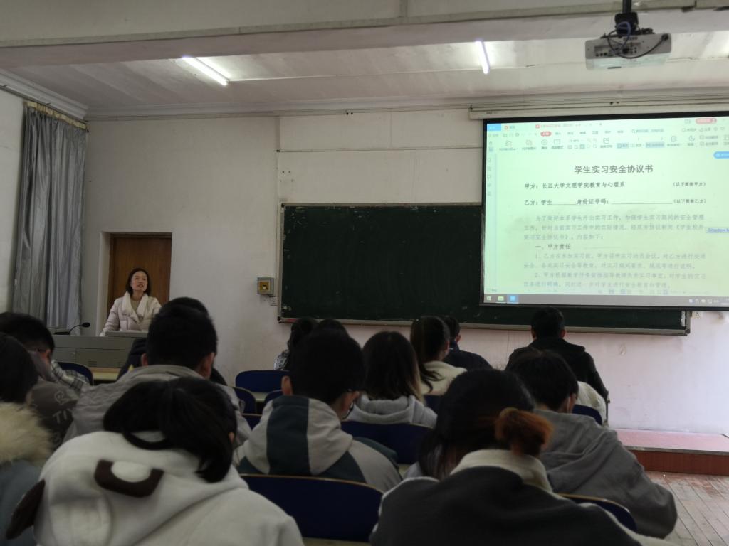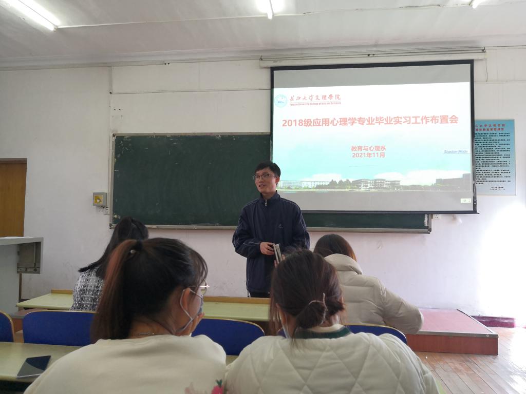 本网讯(学生通讯员 徐星)昨(11月24日)日下午,我系召开18级应用心理学专业毕业实习工作布置会,系主任徐霄、副主任马君莉、党总支副书记梅曼曼、辅导员覃儒卿及18级应用心理学专业全体毕业生出席此次会议。